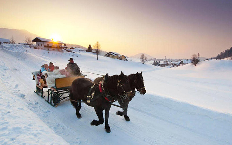 Am Schmiedbauernhof starten romantische Pferdekutschen- und Schlittenfahrten durch die verschneite Winterlandschaft von Faistenau. Wärme Decken sorgen für gemütlichen Komfort, während Sie rund eine Stunde lang idyllische Strecken erleben – auf Wunsch mit Einkehr, z. B. für Familien- oder Geburtstagsfahrten. Mehr Infos, Preise und Buchung über den Schmiedbauernhof.